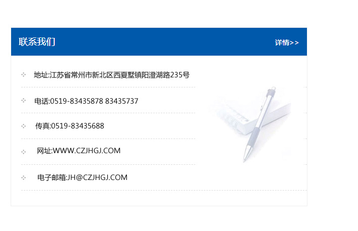 傳真:0519-83435688    郵編:213135    網址:WWW.czjhgj_com.szslsjt.com    電子郵箱:JH@czjhgj_com.szslsjt.com